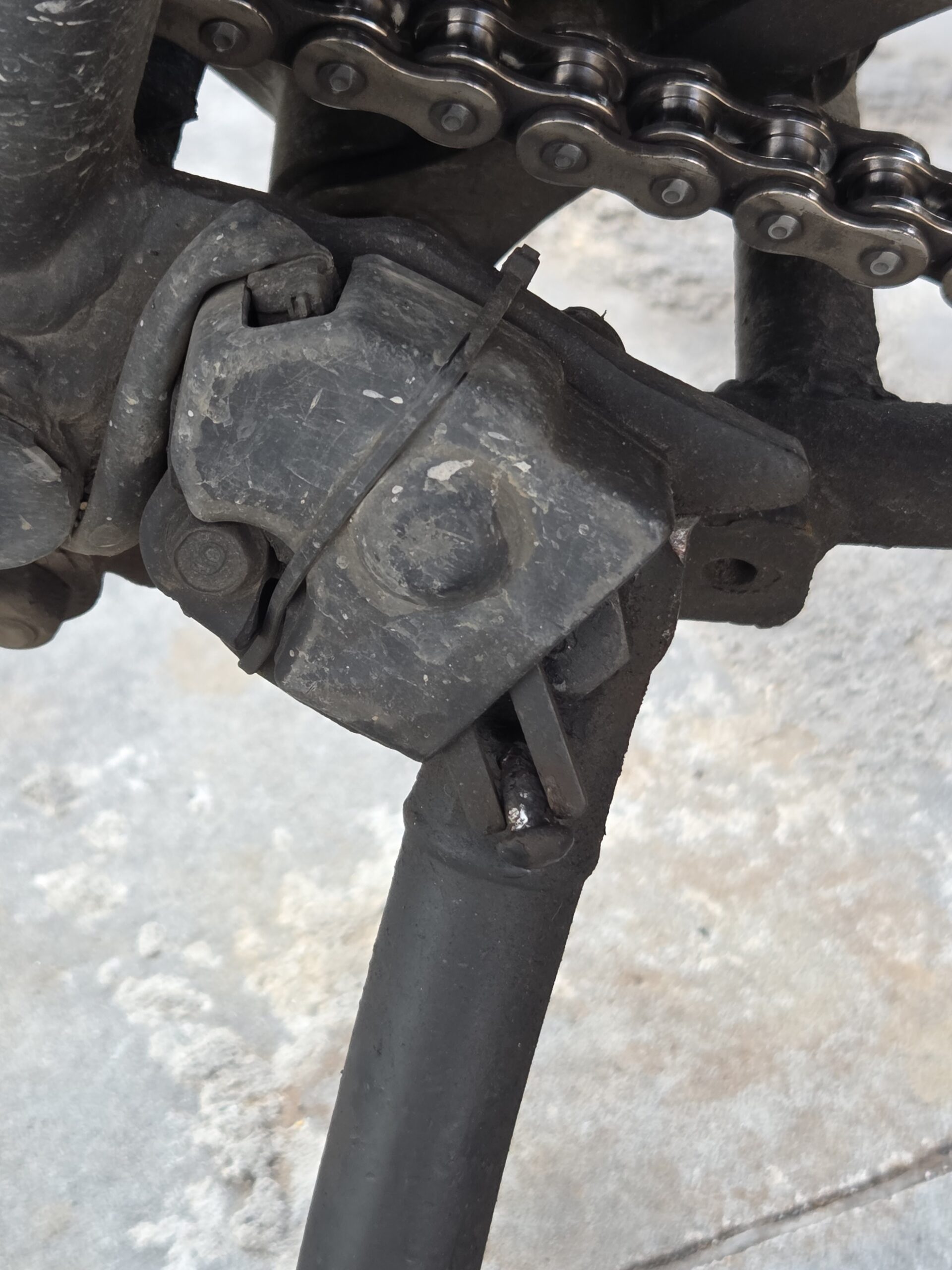En el camino algo me golpeó la pierna izquierda y luego la moto me dio problemas para arrancar. Resulta que algo dobló el pin de la pata de la moto y ese pin mueve un interruptor que evita que la moto ruede si la pata está abajo. Al subir la pata ese pin se quedaba abajo. Cuando ya me había pasado un par de veces que al tratar de salir se me apagaba la moto me fijé en la pata y encontré el problema. De ahí (en México) hasta Spokane estuve con el interruptor arriba para que no molestará. Con las herramientas de Dan arreglé ese problema también.