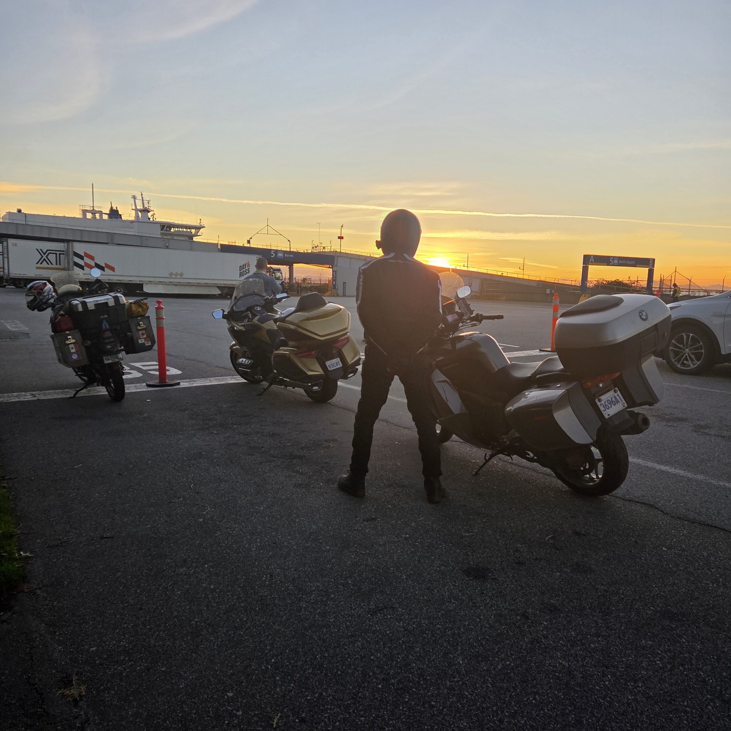 Después de rellenar de combustible busqué una ferretería y encontré un tornillo para sujetar mi freno. En la tarde llegé a Canadá y tome un ferry a la isla de Vancouver. Me tocó una puesta de sol espectacular. Fue el final perfecto para la primera parte de mi viaje.