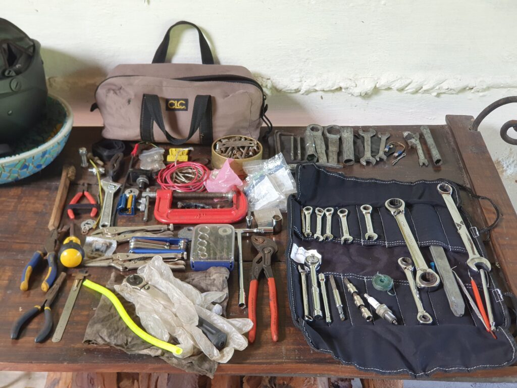 Me queda reducir algo las herramientas que me voy a llevar, revisar los papeles, y jugar un poco con el carburador para ver si puedo dejar la mezcla en su punto para mejorar el rendimiento. También voy a cambiar el aceite a los amortiguadores delanteros y el trasero. Con eso debo estar listo.
