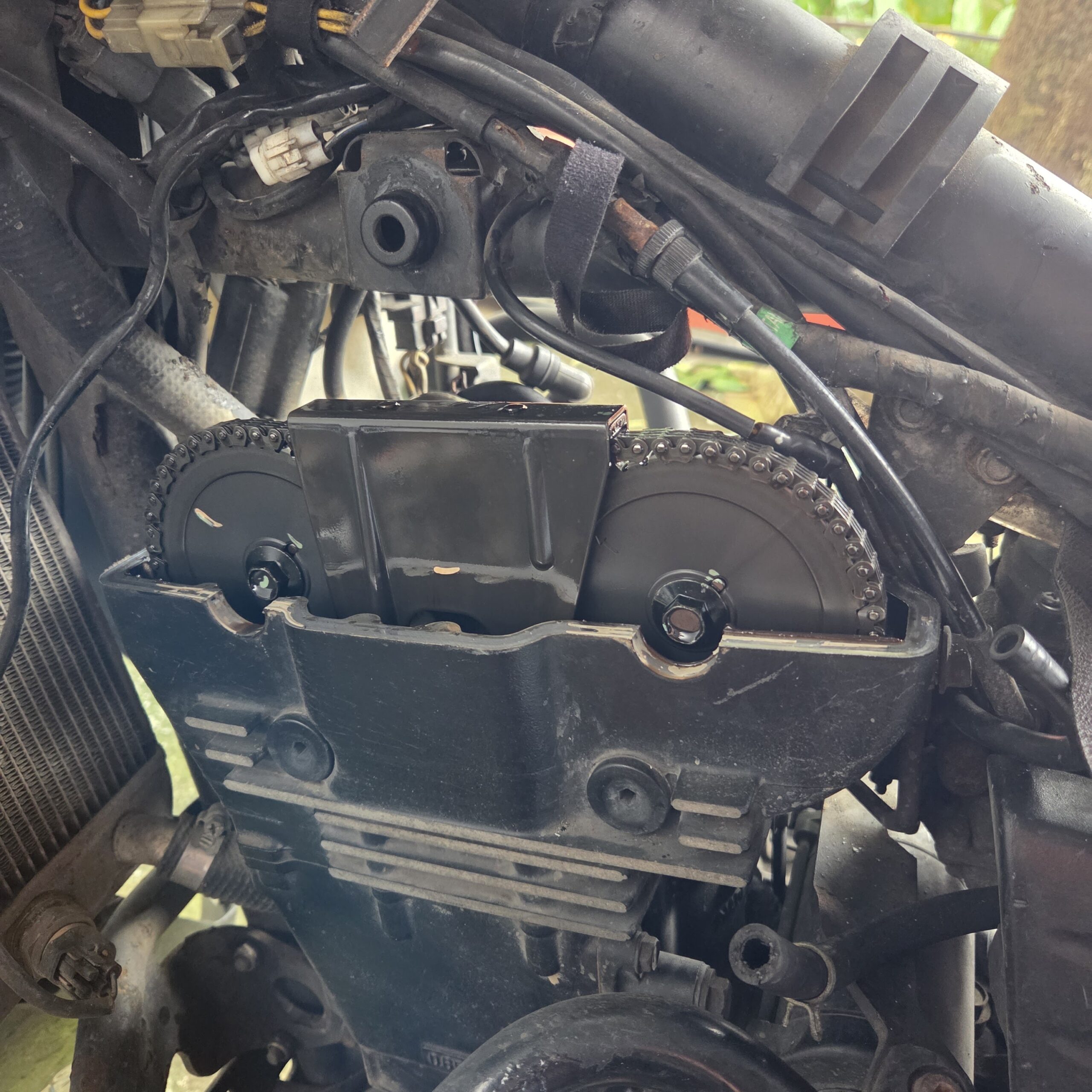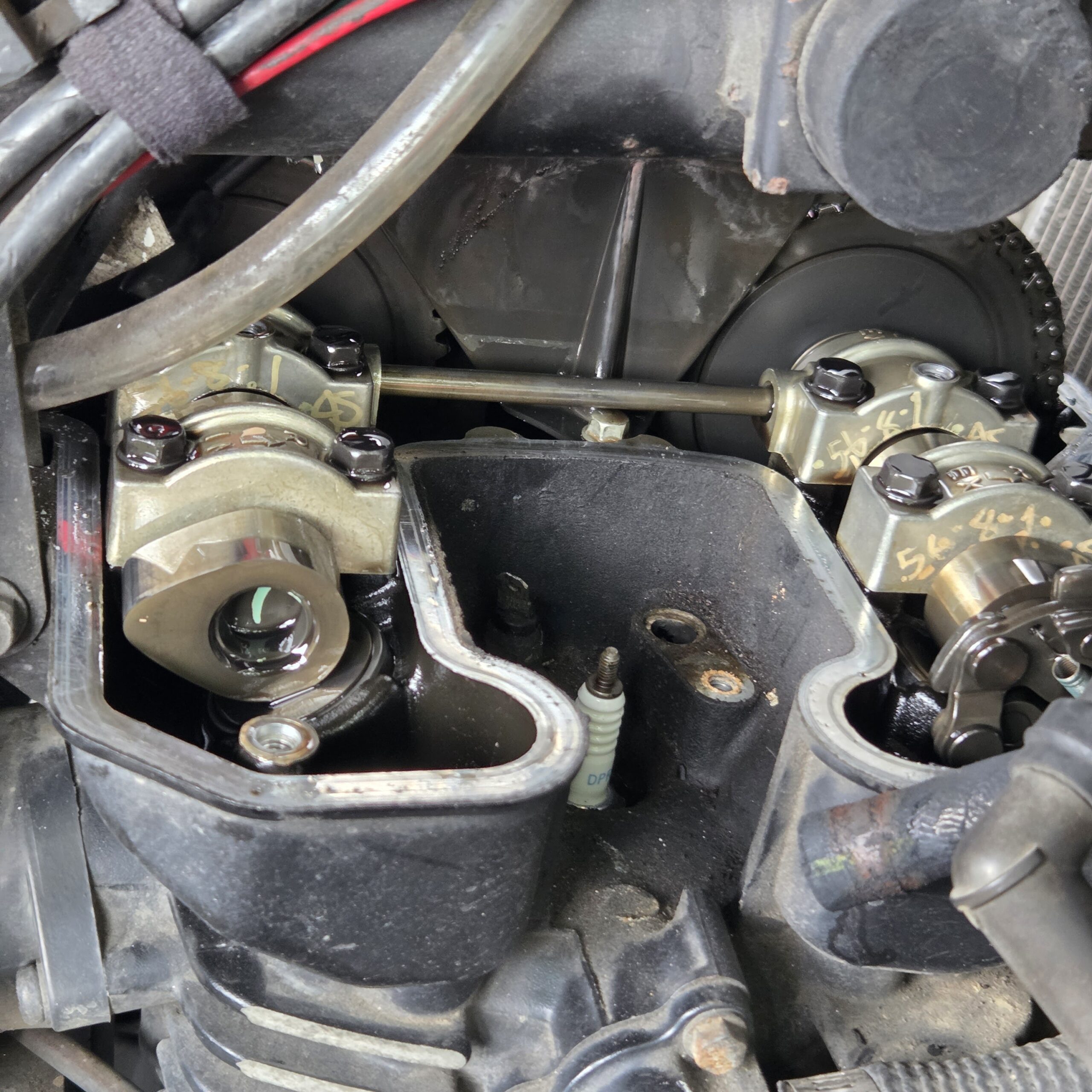 Tenía 54,000 kilómetros sin revisar las válvulas. No es un trabajo trivial revisar las válvulas. Ya había hecho la primera revisión justo después de comprar la moto. Tenía 36,000k cuando abrí el cabezote para medir las válvulas. Estaban en perfecto estado. El manual de taller especifica la revisión de las válvulas cada 42,000k y llevaba 56,000k sin revisarlas. No pensé que estarían mal porque no hay síntomas que indiquen válvulas apretadas. Igual, era de hora de medir su holgura así que volví a destapar el cabezote para medirlas. Las válvulas estaban dentro del rango estándar. Seguro que si el desgaste sigue al mismo ritmo también estarán bien dentro de 42,000k cuando vuelva a hacer el trabajo.